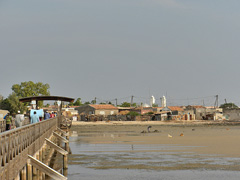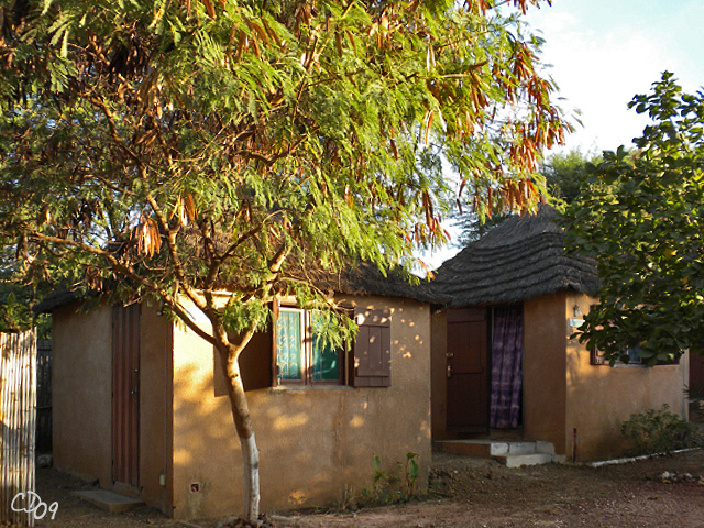 Vom Ort selbst ist nicht viel für uns zu sehen. Wir stellen hier lediglich unsere Räder unter, bevor wir uns an einem Spätnachmittag mit einer Piroge nach Keur Bamboung abholen lassen. Erst am Abend des folgenden Tages kehren wir zurück und belegen die Rundhütten des Campements "Les Coquillages". Gemauerte und mit einem stabilen Dach versehene, kleine runde Häuschen mit Betten für jeweils zwei bis drei Personen.